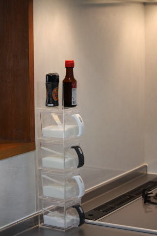 デザイン調味料入れスタンド・・・狭い空間にコンパクトに多くの調味料を収納出来ます。
