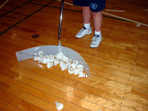 子ども達にノックを上げて練習していると、シャトルが色々な所に飛び散り集めるのに大変な思いをしている時に協力してくれている友人が思いついた物です。